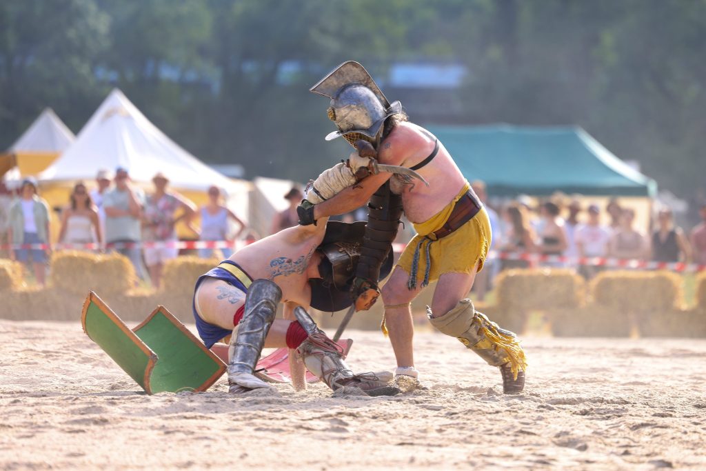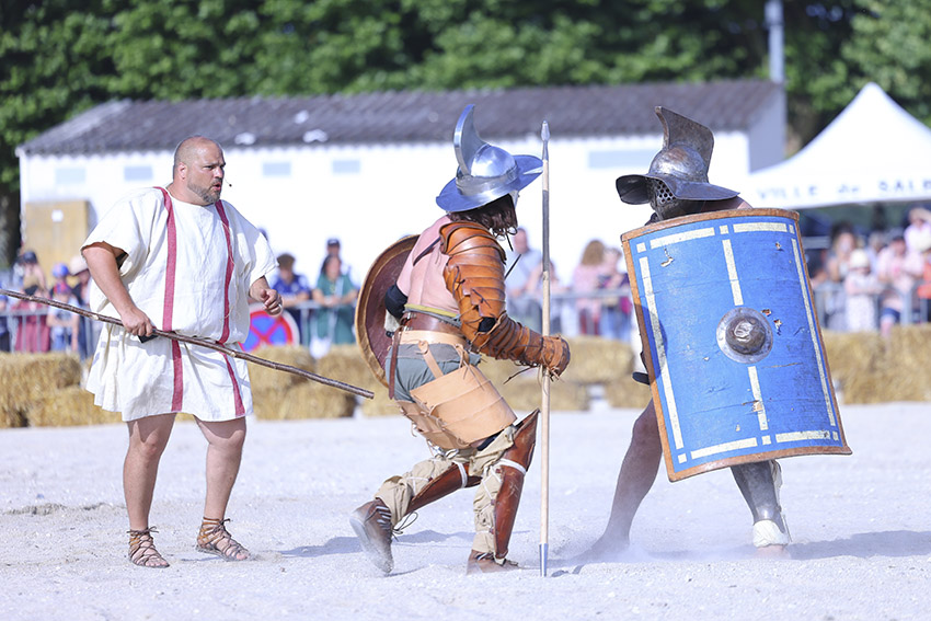 Au festival Salera, la gladiature n’est pas seulement un spectacle : elle est un outil de transmission historique. Démonstrations commentées, combats scénarisés, ateliers pédagogiques et rencontres avec des passionnés permettent de comprendre le quotidien des gladiateurs, leur entraînement et leur place dans la société romaine.